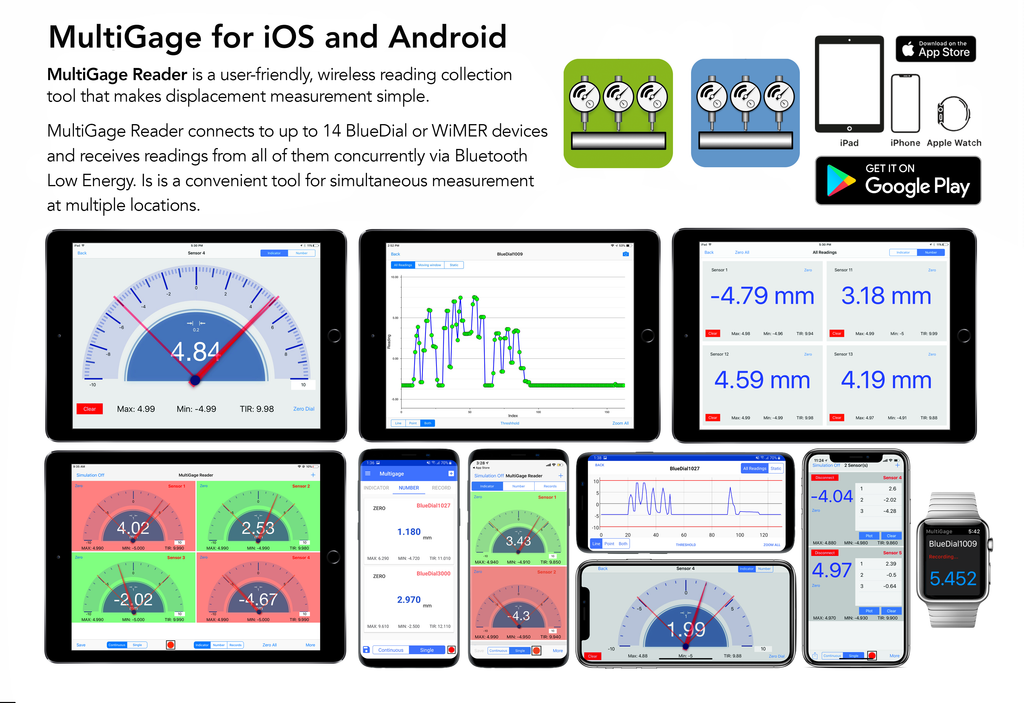 MultiGage for iOS allows the user to connect to multiple devices and read/record measurements wirelessly on your iPad or iPhone.